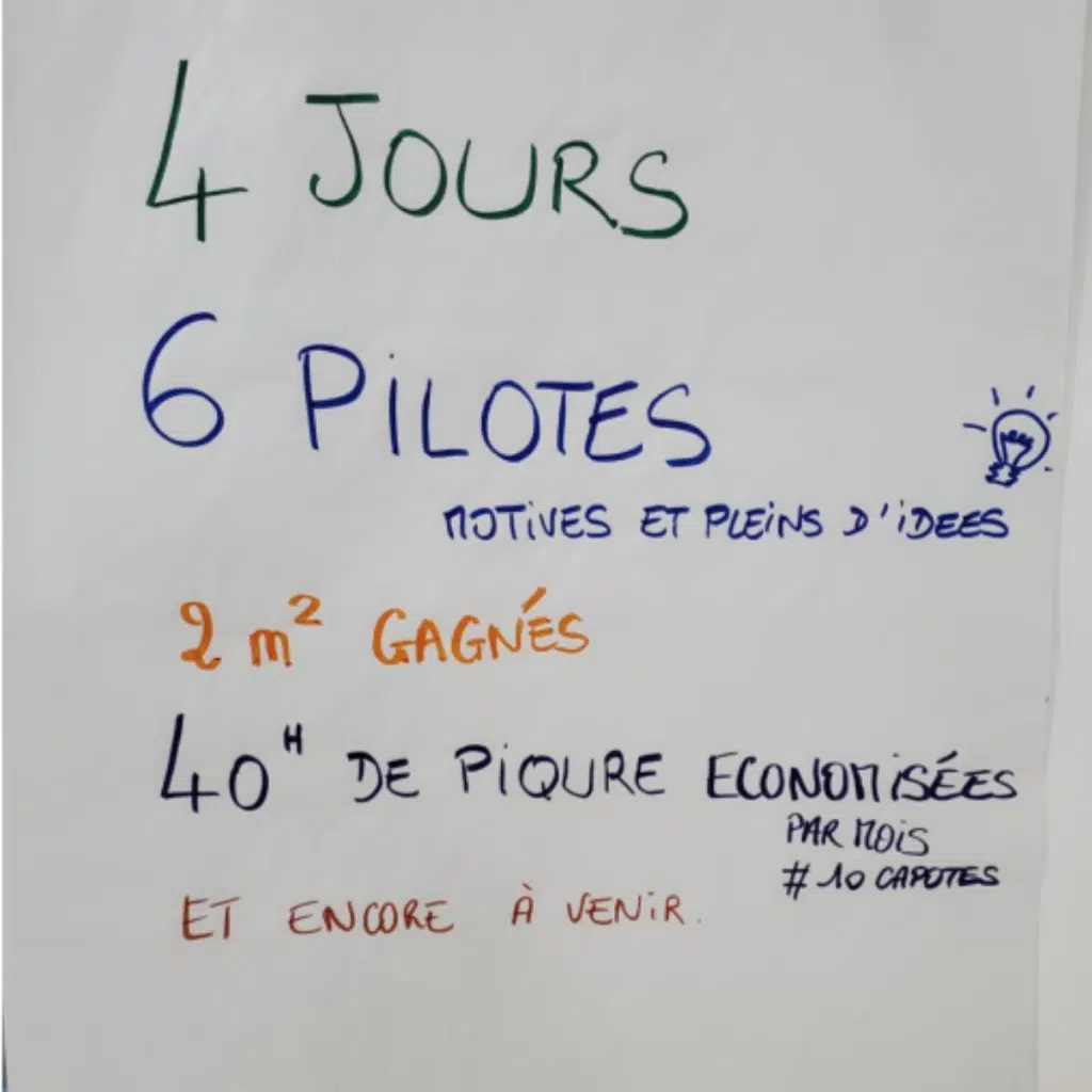– Et un gain de 40h de piquage par mois soit l’équivalent de 10 capotes produites grâce à la concrétisation de ces actions. »